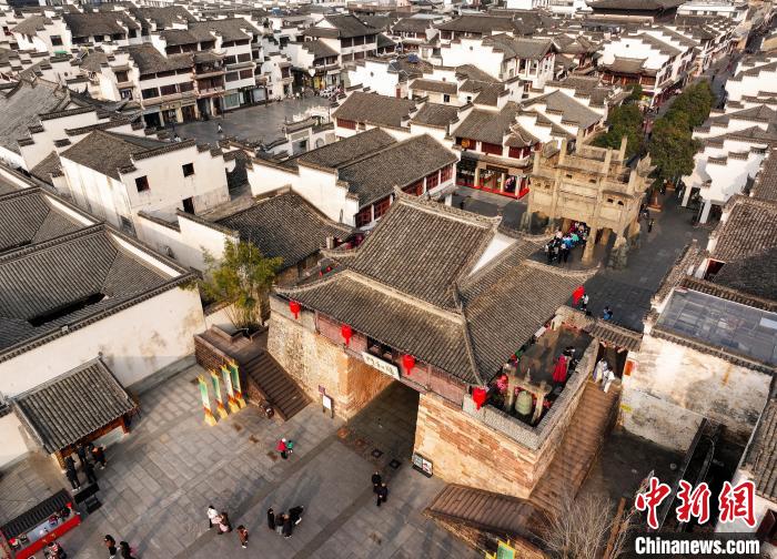 1月10日拍摄的安徽省黄山市歙县徽州古城(无人机照片)。施亚磊摄