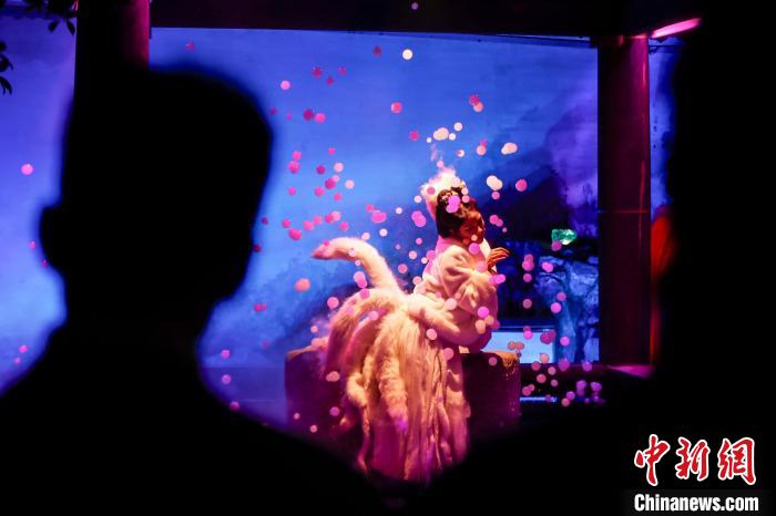 1月10日,演员曹丽华在安徽省黄山市歙县徽州古城府衙内互动表演。施亚磊摄
