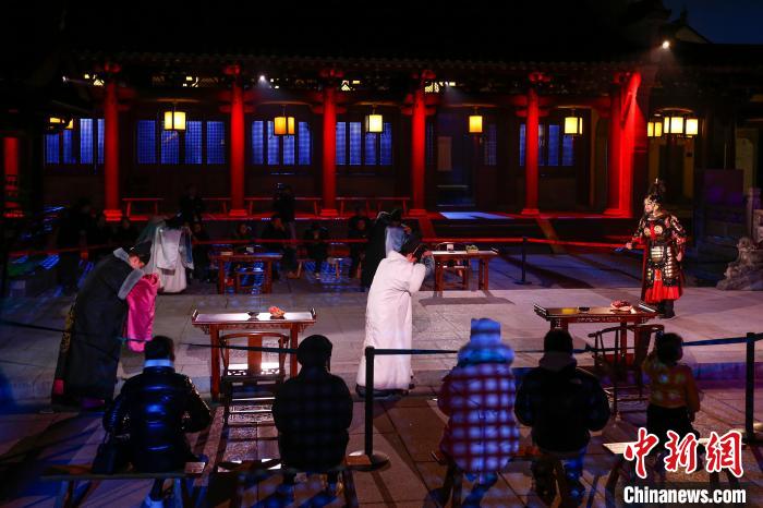 1月10日,演员在安徽省黄山市歙县徽州古城府衙内表演。施亚磊摄