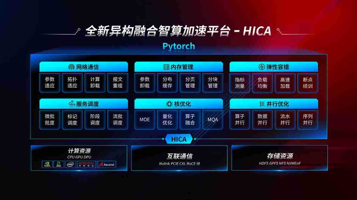 通过自研的服务层、、中间适配层、、、以及调度编排算法,,采用数据并行、、模型并行等多种并行方式,,,把并行计算任务进行有效的分解,,,,使其分别由相应的软件栈和算力资源来承接。。当GPU资源变化,,,HICA可以实时动态调度计算子任务并调整模型拓扑和架构,,,以充分聚合各种算力资源。。